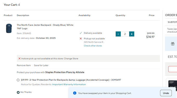 This new feature helps you resolve out-of-stock issues directly from the Cart page by offering a one-click swap to a similar item that is available for delivery. Instead of abandoning the cart or searching manually, you are now presented with relevant in-stock replacement.