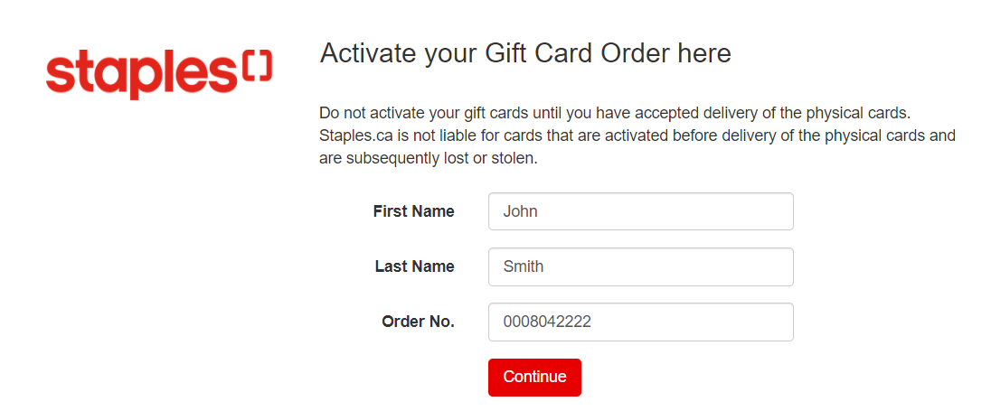 Activating my Staples Gift Card